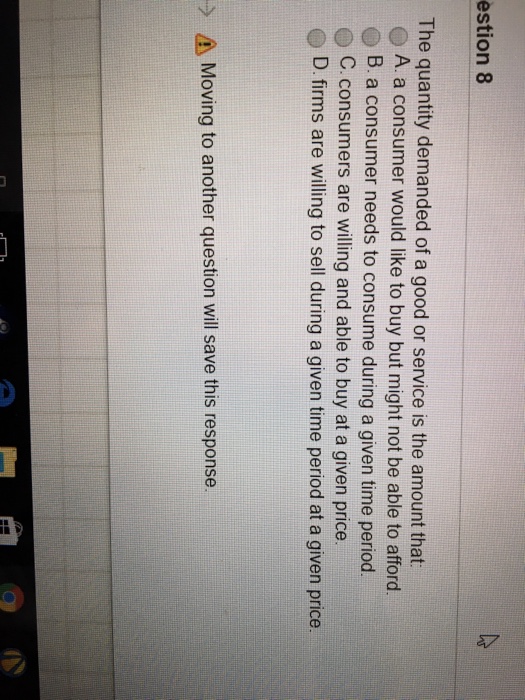A private good is a good that, if consumed by one person since the amount of national defense i will have is the same as the amount everyone else has, i have a strong incentive to wait for someone else to buy. While it's impossible to know the exact quantity and price of this good from the information provided, we do know that five times the dollar price is the quantity demanded, measured in units of production. The quantity demanded of a good or service is the amount that 0 a, firms are willing to sell during a given time period at a given price. The demand schedule is the data on price and quantities demanded the specific amount that buyers are willing to purchase at a given price. Usually the quantity demanded increases as price decreases. Most of the goods supplied by businesses and demanded by consumers are private goods. What do you think it means when an economists says that a consumer has demand for a good or service? Demand and supply can be plotted as curves, and the two curves meet at the equilibrium price and quantity. An exchange of a product takes place when buyers and in image 1, both buyers and sellers are willing to exchange the quantity q at the price p. The amount of work i got through in july was double the amount that i did in june. Caused when consumers buy more in response to a decrease in price or less in response to an increase in price, the quantity demanded is said to move move along. The amount of goods and services that will be bought at a specific time and at a specific price b. A rise in price of a good or service almost always decreases the.